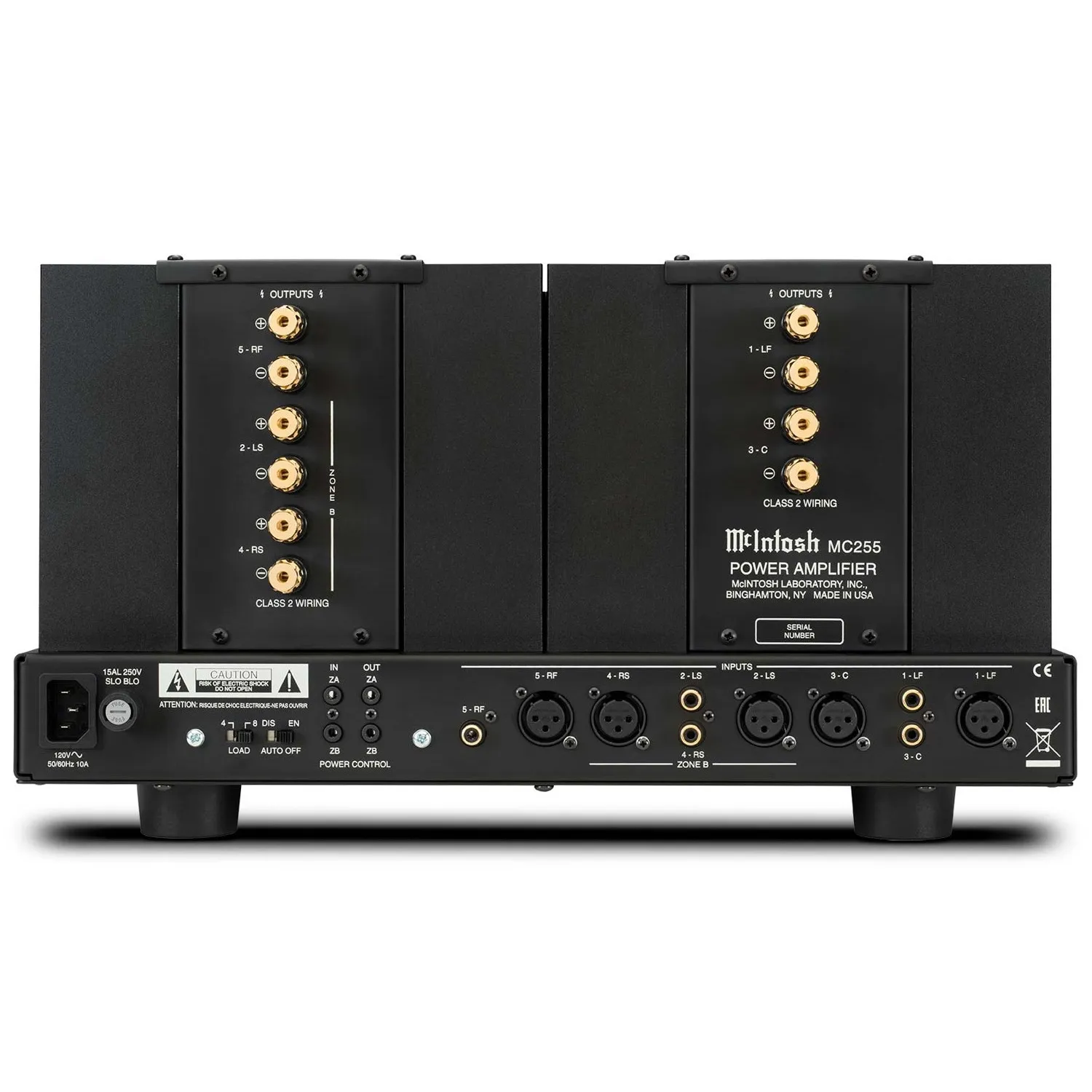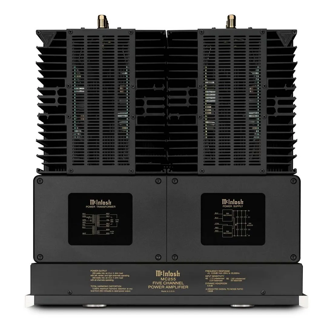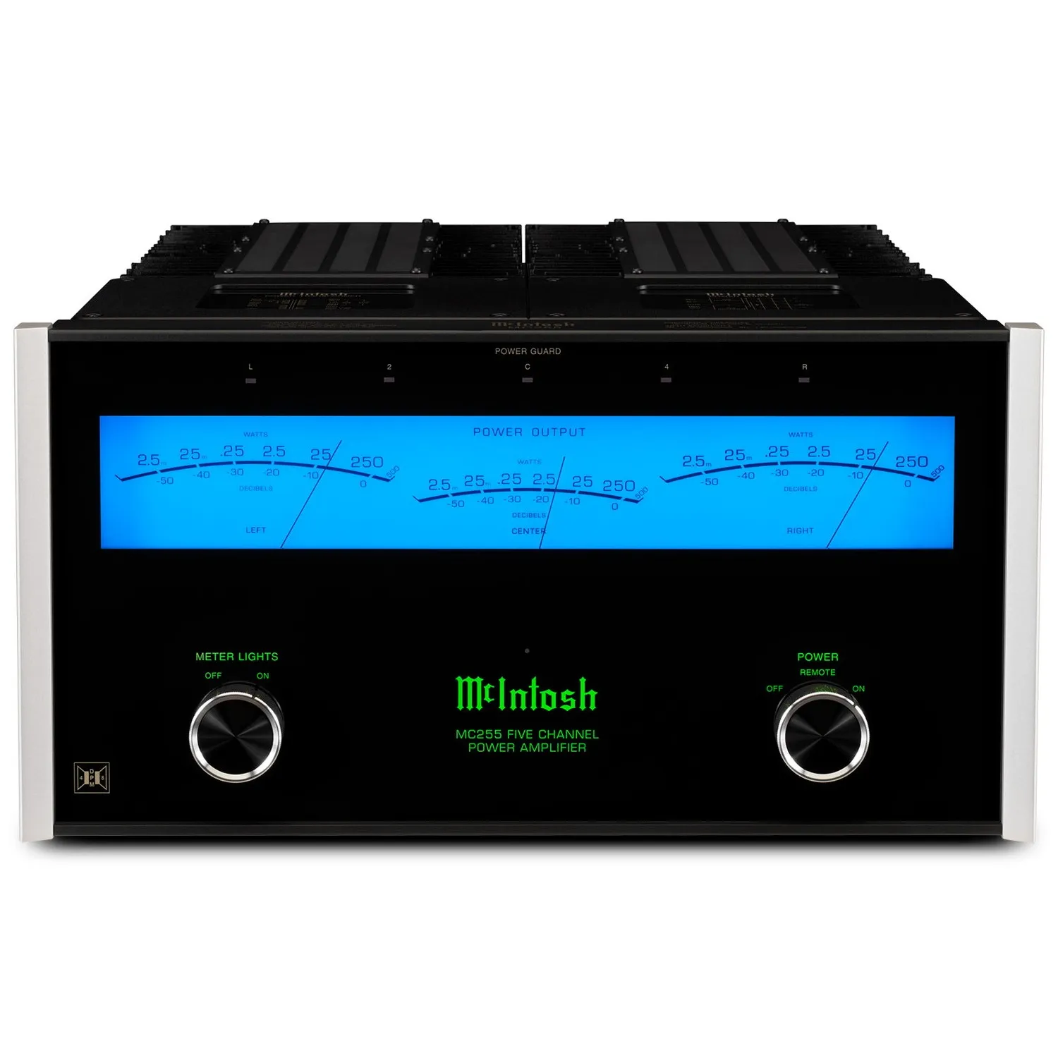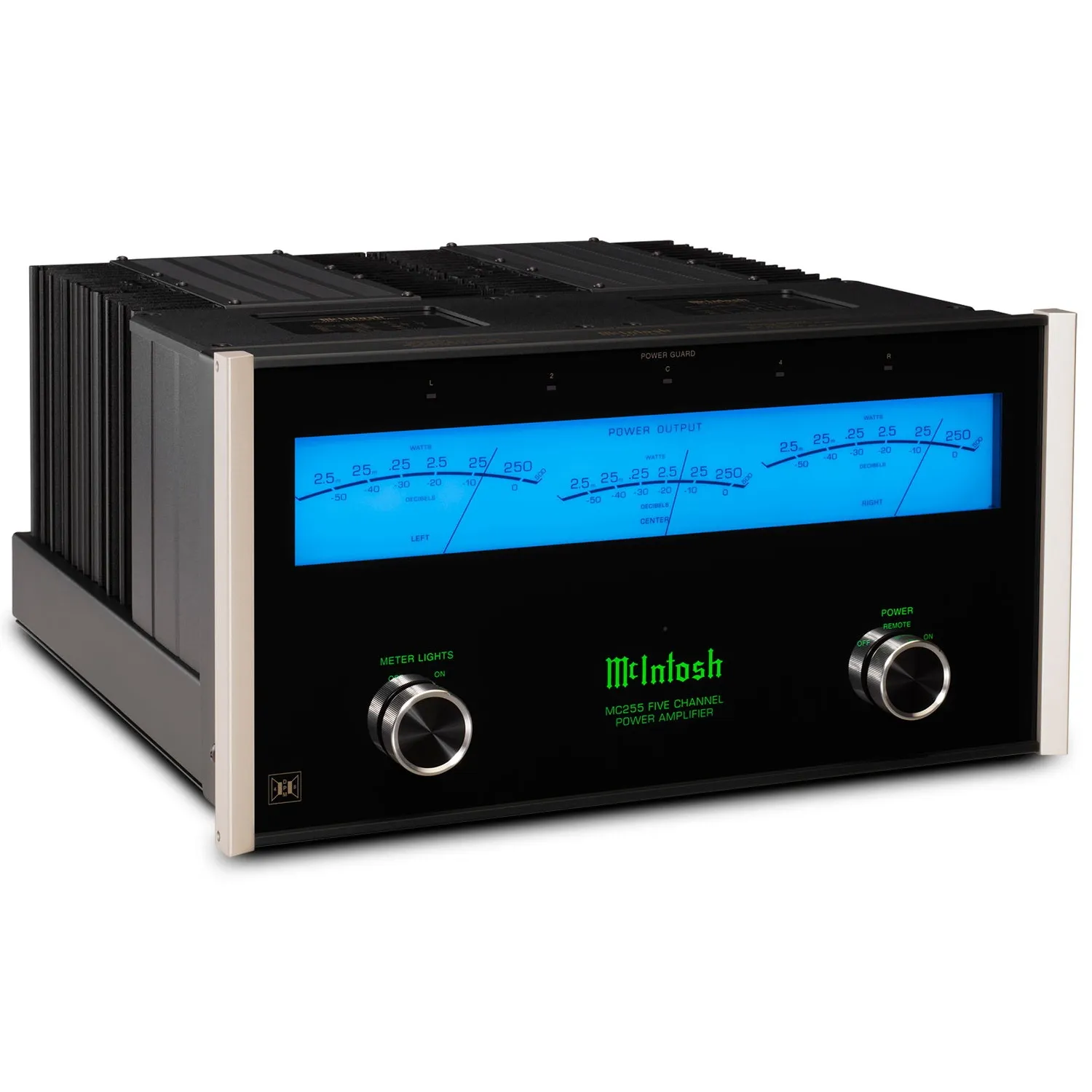 McIntosh MC255 — пятиканальный усилитель мощности для систем домашнего кинотеатра. Аппарат имеет массивный блок питания с фирменной технологией Dynamic Power Manager, позволяющей обеспечивать заявленную мощность вне зависимости от подключенной нагрузки. Оригинальный стиль модели подчеркивает узнаваемый стрелочный индикатор TripleView и боковые теплоотводящие радиаторы Monogrammed Heatsinks. Для подключения к предварительному усилителю или AV-процессору предусмотрены RCA и XLR входы.